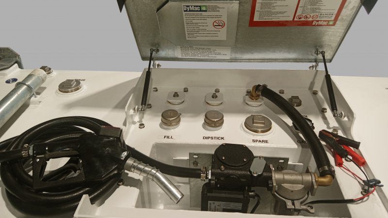 The Dymac Fuel Hub Compact 1000 litre is an IBC transportable fuel storage tank with a 110% bund and comes with a galvanised hatch lid and four galvanized stacking corners. It is has dual feed and return ports for generators and has the option to add a hand pump or 12V pump kit. Made from 4mm steel on both inner and outer tanks, the Fuel Hub Compact range are designed for heavy duty use.